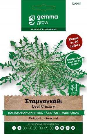 Έτοιμο σε 40 ημέρες. Μονοετές. Φύλλα επιμήκη, οδοντωτά, χρώματος έντονου πράσινου με στέλεχος μεγάλο και άσπρο. Απόσταση φυτών (εκ.): 6-8. Απόσταση γραμμών (εκ.): 30-40. Βάθος σποράς (εκ.):0,5-1,5. Ημέρες φυτρώματος: 10-12. Έναρξη συγκομιδής (ημέρες): 40. Ποικιλία: Catalogna frastagliata. 1721